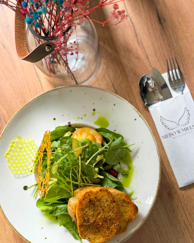 Wybitne fuzje smaków w daniach będą niewątpliwie cieszyć Wasze podniebienia, gdyż nasze kompozycje są oparte o autorskie, wyjątkowe przepisy, w których z pasją łączymy tradycję z obecnymi trendami. Polskie potrawy regionalne to nasza również nasza specjalność, dlatego w naszym menu znajdziesz także regionalne potrawy. Specjalizujemy się w wyrobach własnej produkcji – własny chleb, wyroby cukiernicze, smalec, pasztety i wiele innych. Zapraszamy do Niebo w Mielnie.